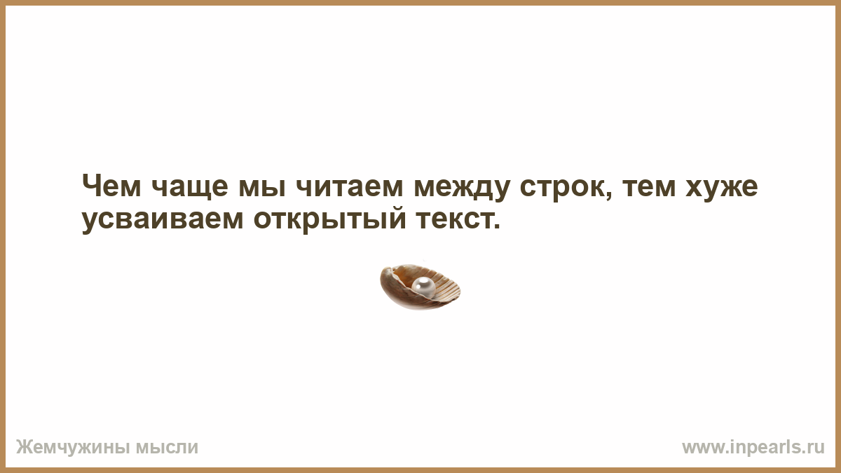 Чем чаще мы читаем между строк, тем хуже усваиваем открытый текст.