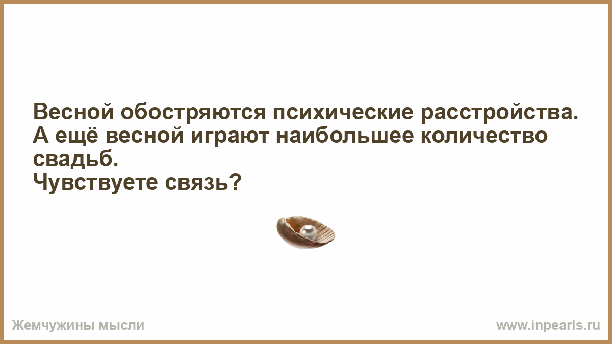 Весной обостряются психические расстройства. А ещё весной играют наибольшее количество свадьб. Чувствуете связь?