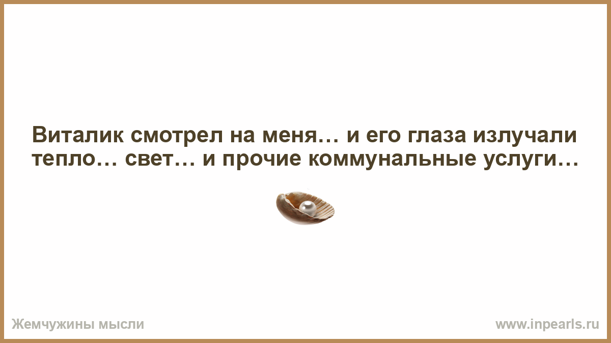 Виталик смотрел на меня… и его глаза излучали тепло… свет… и прочие коммунальные услуги…