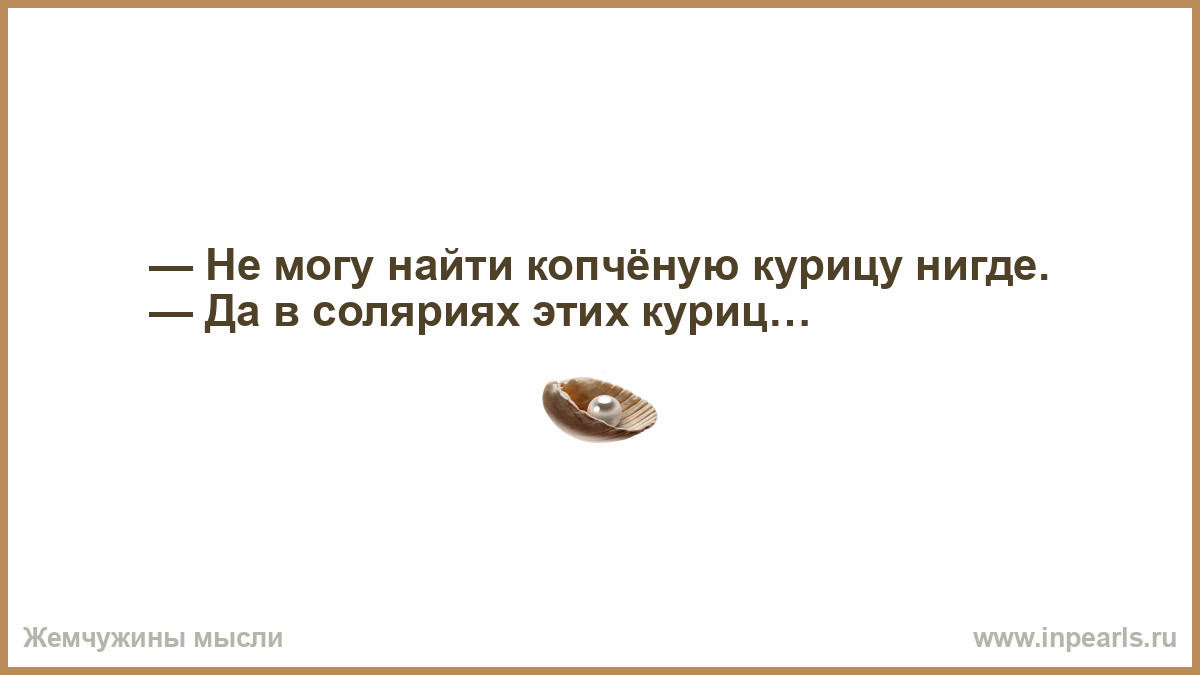 — Не могу найти копчёную курицу нигде. — Да в соляриях этих куриц…