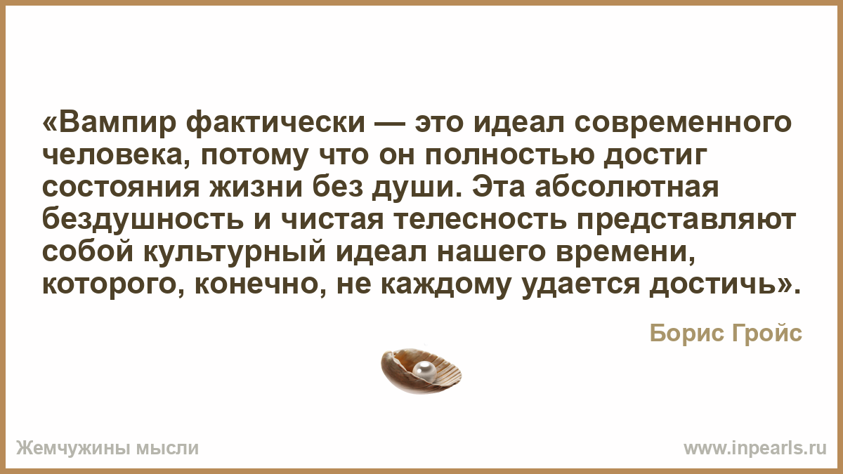 «Вампир фактически — это идеал современного человека, потому что он полностью достиг состояния жизни без души. Эта абсолютная бездушность и чистая телесность представляют собой культурный идеал нашего времени, которого, конечно, не каждому удается достичь».