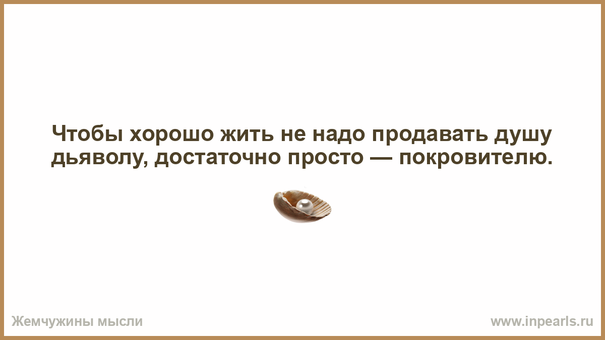 Чтобы хорошо жить не надо продавать душу дьяволу, достаточно просто — покровителю.