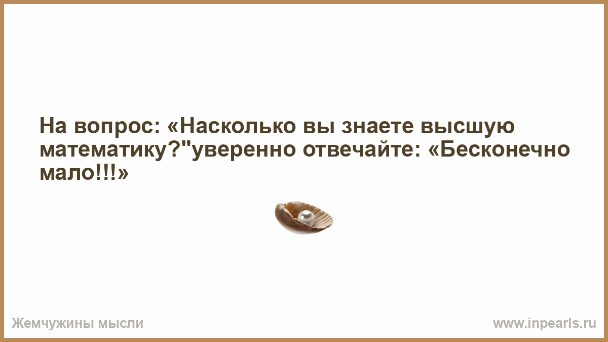 На вопрос: «Насколько вы знаете высшую математику?"уверенно отвечайте: «Бесконечно мало!!!»
