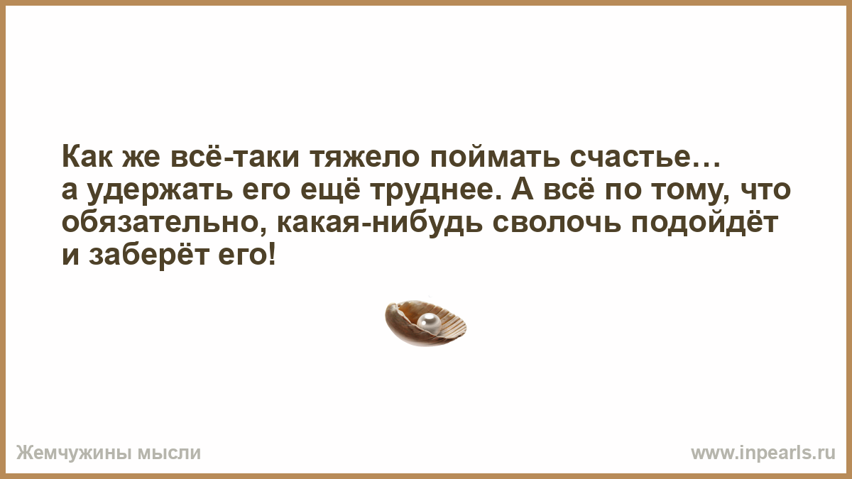 Как же всё-таки тяжело поймать счастье… а удержать его ещё труднее. А всё по тому, что обязательно, какая-нибудь сволочь подойдёт и заберёт его!