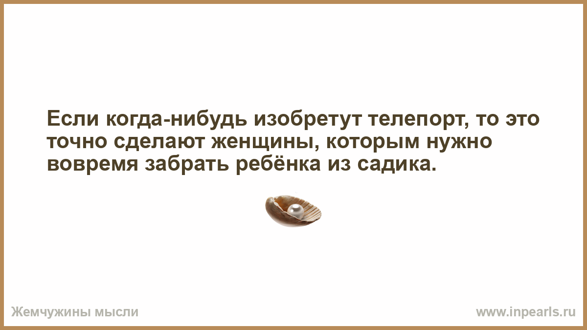 Если когда-нибудь изобретут телепорт, то это точно сделают женщины, которым нужно вовремя забрать ребёнка из садика.
