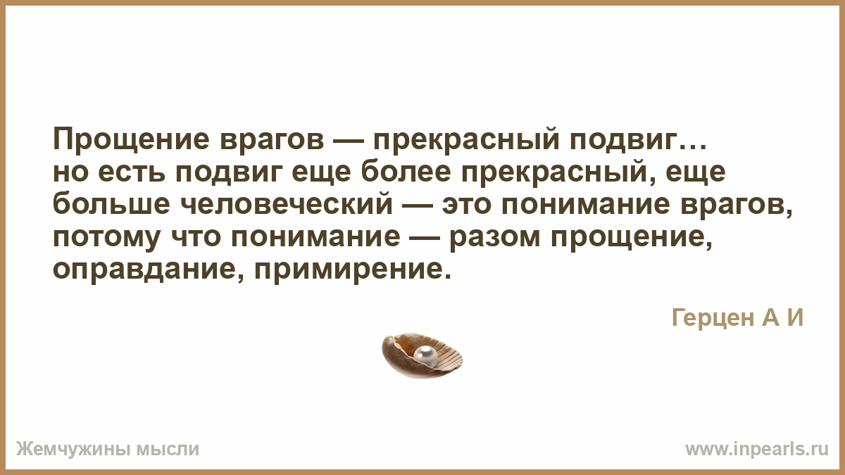 Прощение врагов — прекрасный подвиг… но есть подвиг еще более прекрасный, еще больше человеческий — это понимание врагов, потому что понимание — разом прощение, оправдание, примирение.