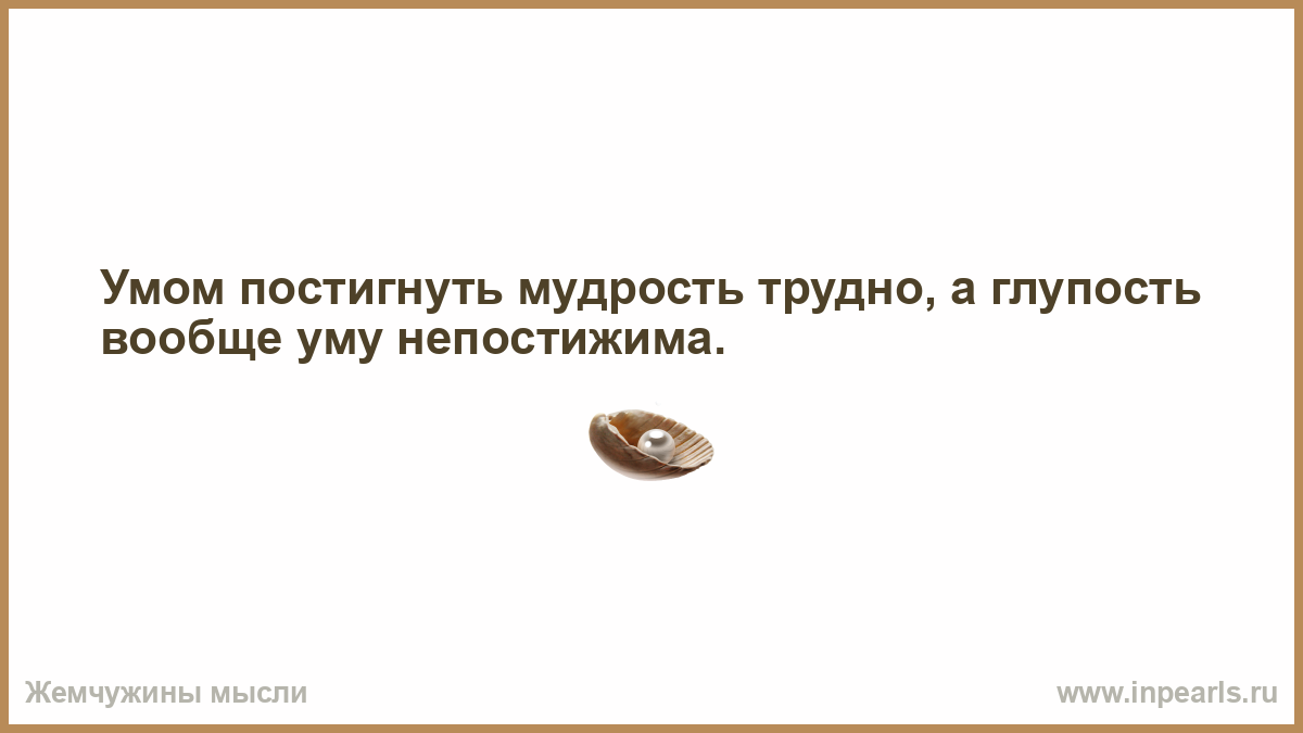 Умом постигнуть мудрость трудно, а глупость вообще уму непостижима.