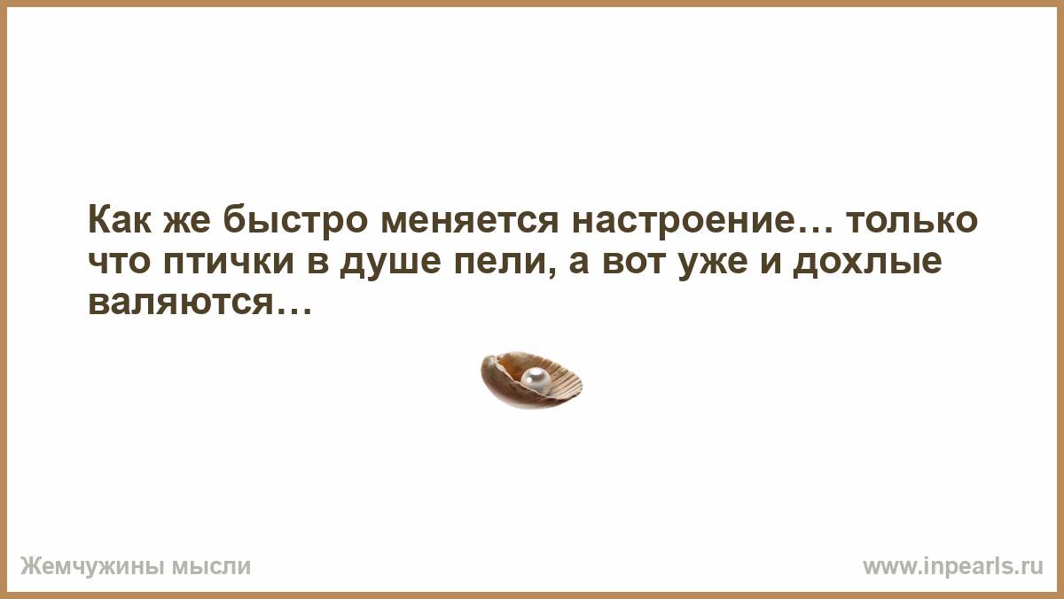 Как же быстро меняется настроение… только что птички в душе пели, а вот уже и дохлые валяются…