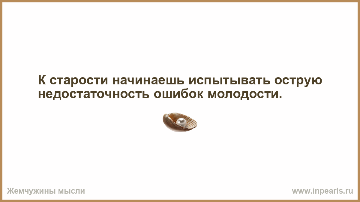 К старости начинаешь испытывать острую недостаточность ошибок молодости.