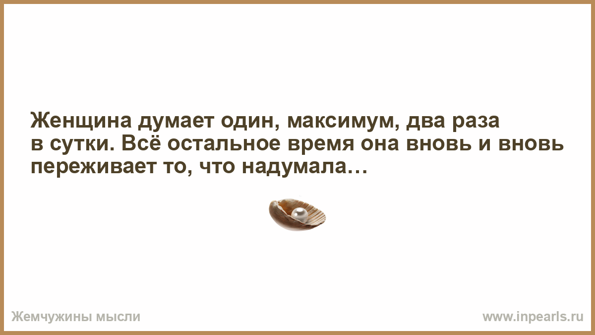 Женщина думает один, максимум, два раза в сутки. Всё остальное время она вновь и вновь переживает то, что надумала…