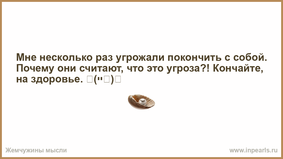 Мне несколько раз угрожали покончить с собой. Почему они считают, что это угроза?! Кончайте, на здоровье. ღ(ړײ)ღ