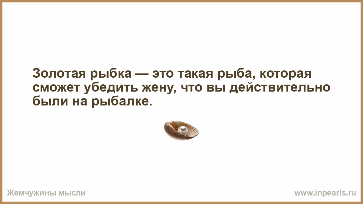 Золотая рыбка — это такая рыба, которая сможет убедить жену, что вы действительно были на рыбалке.