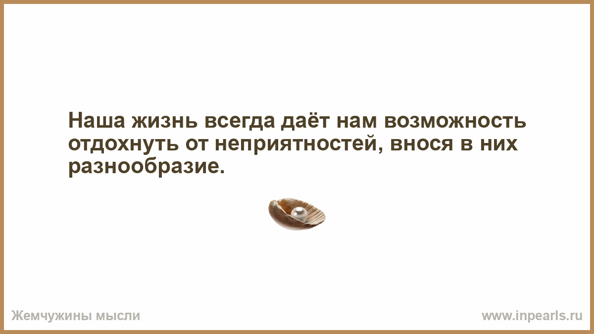 Наша жизнь всегда даёт нам возможность отдохнуть от неприятностей, внося в них разнообразие.