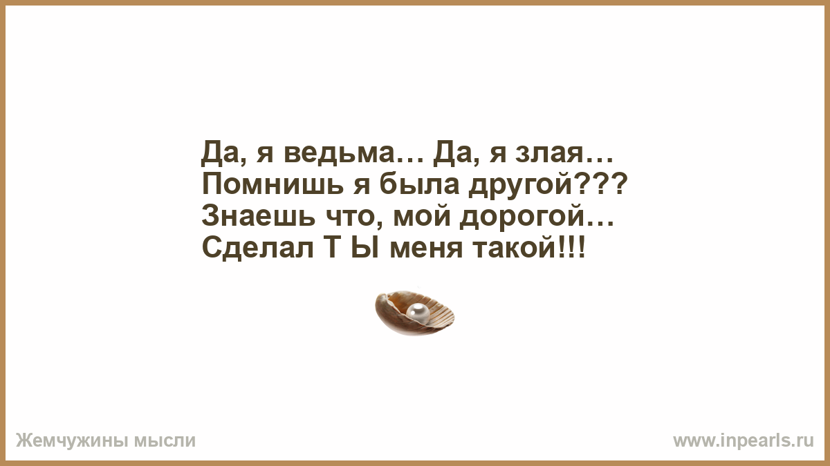 Да, я ведьма… Да, я злая… Помнишь я была другой??? Знаешь что, мой дорогой… Сделал Т Ы меня такой!!!