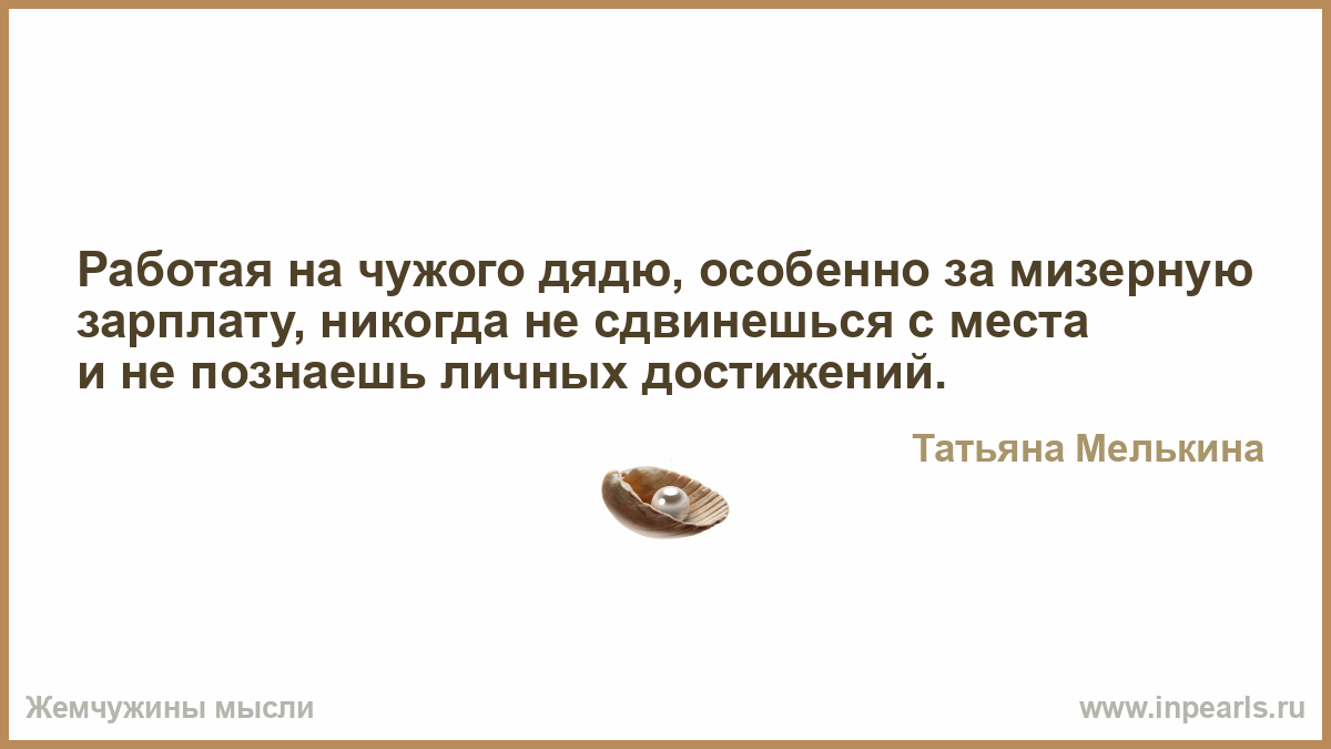 Работая на чужого дядю, особенно за мизерную зарплату, никогда не сдвинешься с места и не познаешь личных достижений.