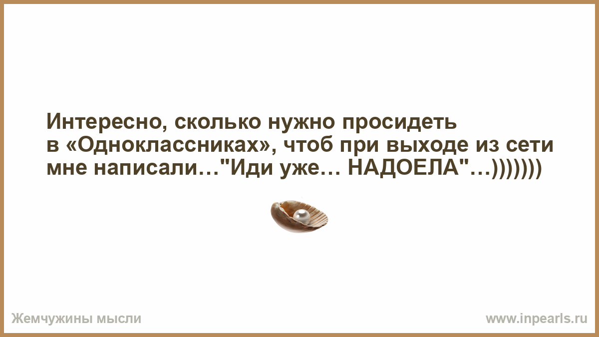 Интересно, сколько нужно просидеть в «Одноклассниках», чтоб при выходе из сети мне написали…"Иди уже… НАДОЕЛА"…)))))))