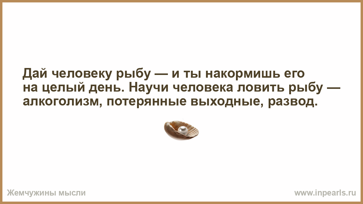 Дай человеку рыбу — и ты накормишь его на целый день. Научи человека ловить рыбу — алкоголизм, потерянные выходные, развод.