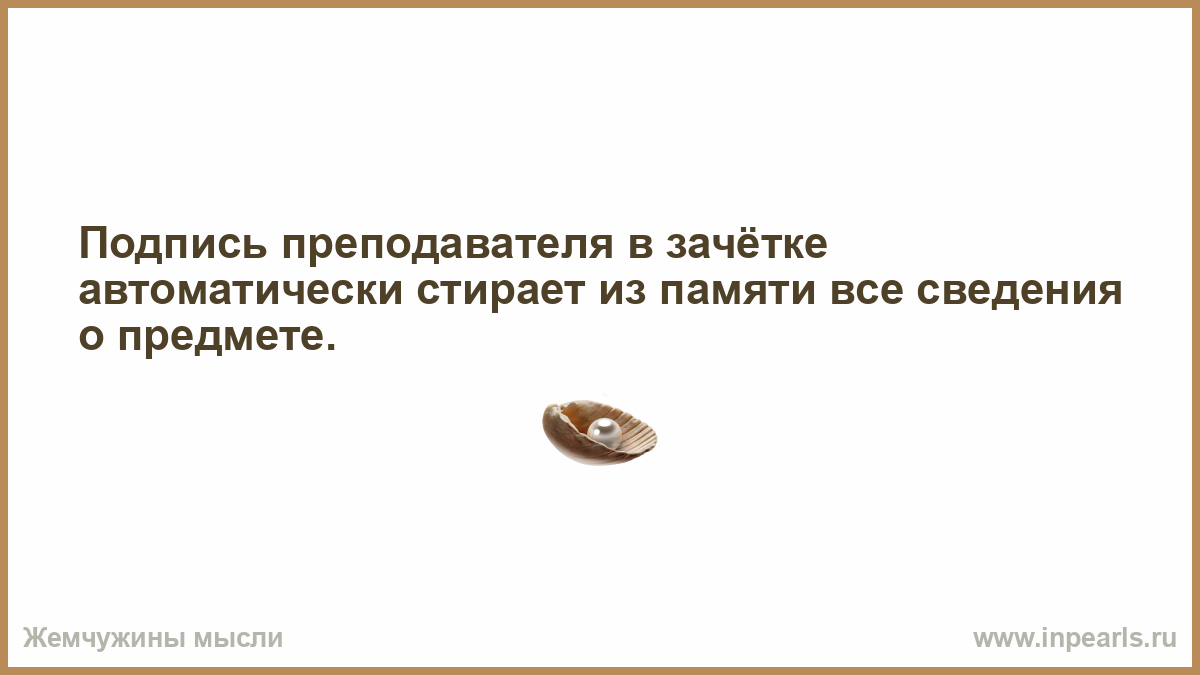 Подпись преподавателя в зачётке автоматически стирает из памяти все сведения о предмете.
