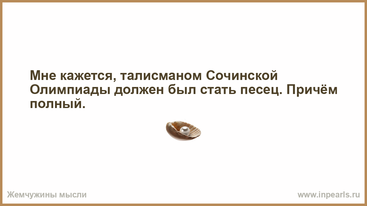 Мне кажется, талисманом Сочинской Олимпиады должен был стать песец. Причём полный.