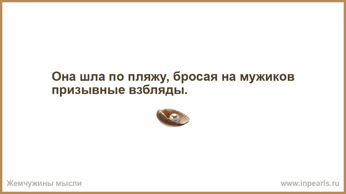 Она шла по пляжу, бросая на мужиков призывные взбляды.