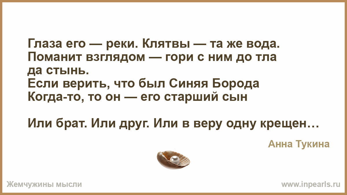 Глаза его — реки. Клятвы — та же вода.