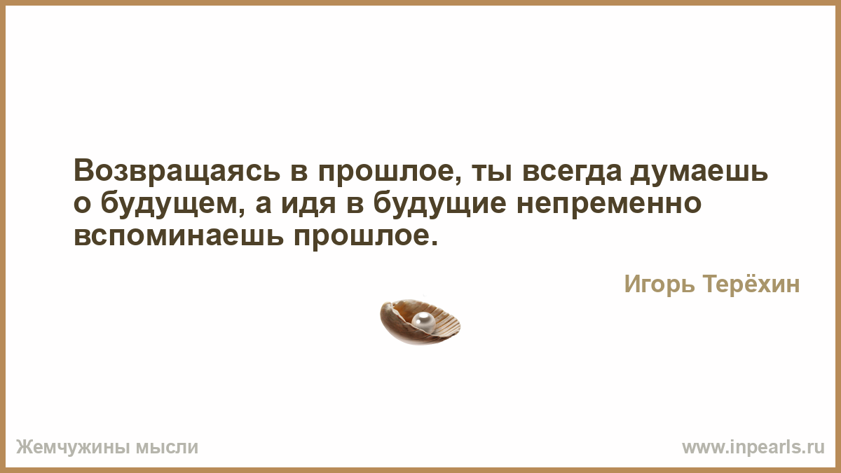 Возвращаясь в прошлое, ты всегда думаешь о будущем, а идя в будущие непременно вспоминаешь прошлое.