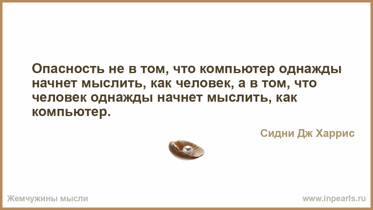 Опасность не в том, что компьютер однажды начнет мыслить, как человек, а в том, что человек однажды начнет мыслить, как компьютер.