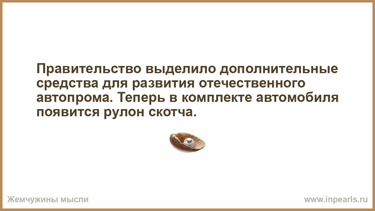 Правительство выделило дополнительные средства для развития отечественного автопрома. Теперь в комплекте автомобиля появится рулон скотча.