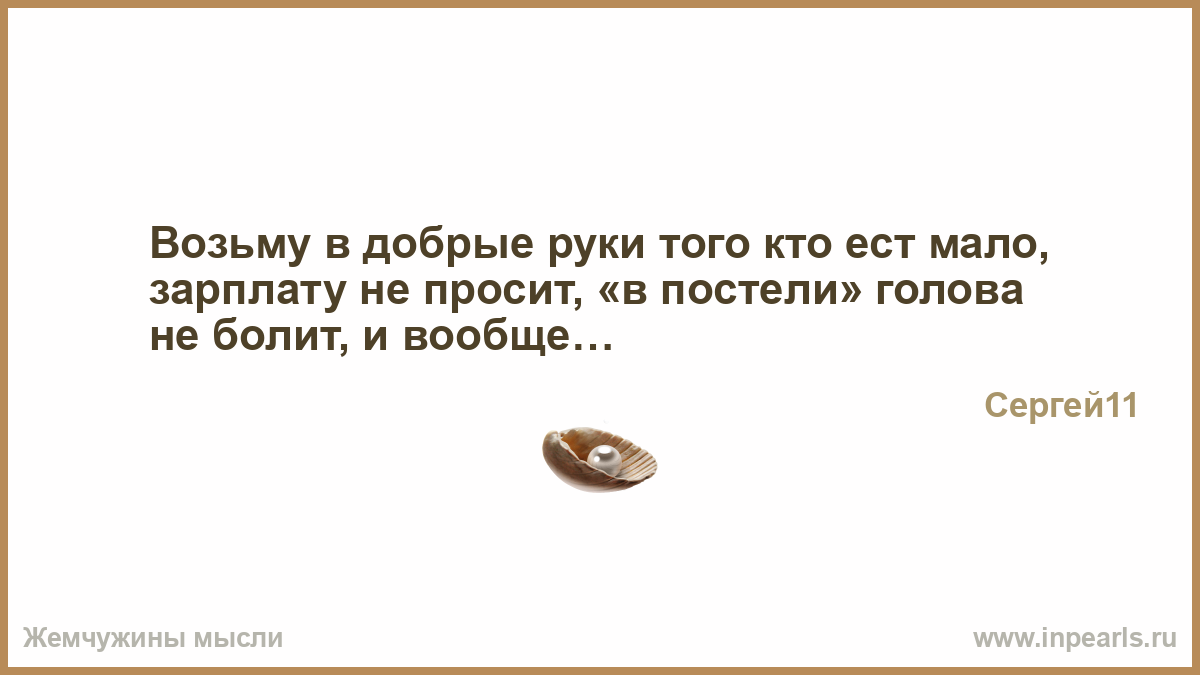 Возьму в добрые руки того кто ест мало, зарплату не просит, «в постели» голова не болит, и вообще…