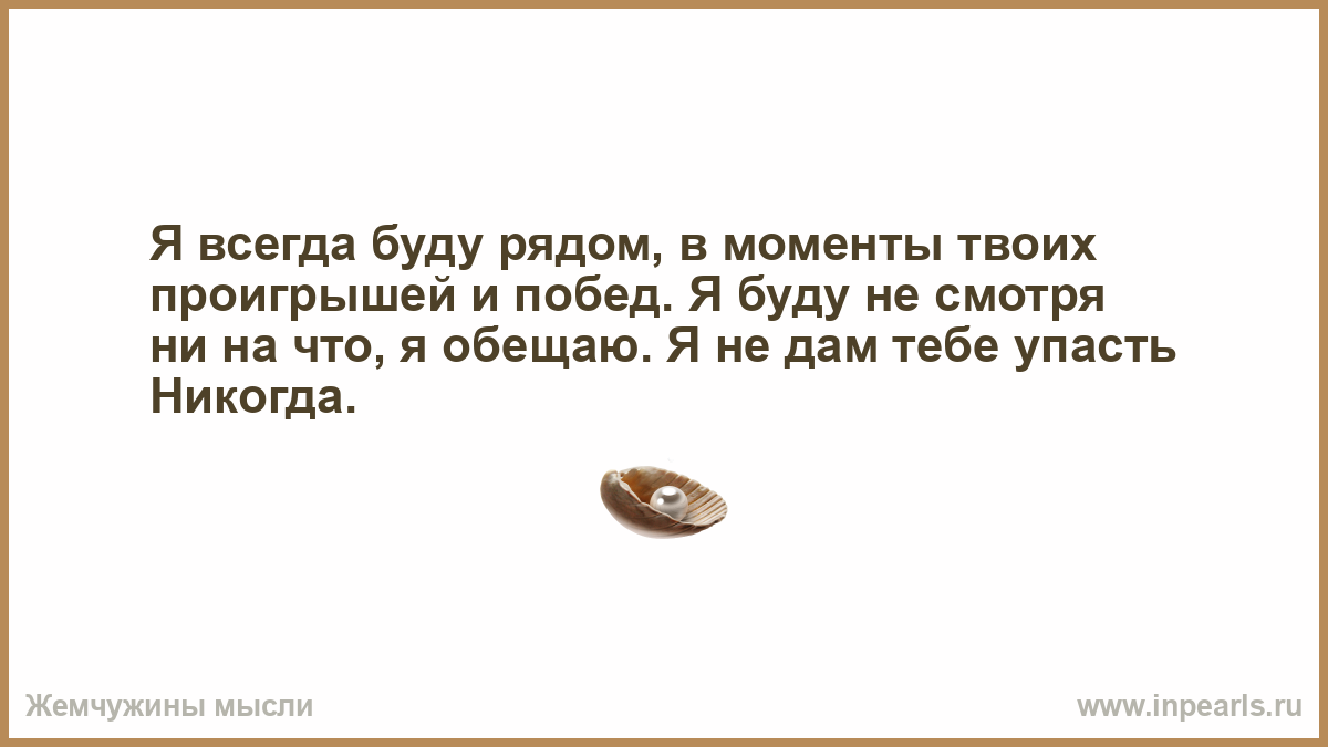 Я всегда буду рядом, в моменты твоих проигрышей и побед. Я буду не смотря ни на что, я обещаю. Я не дам тебе упасть Никогда.