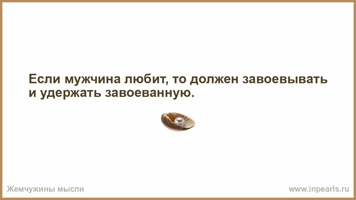 Если мужчина любит, то должен завоевывать и удержать завоеванную.