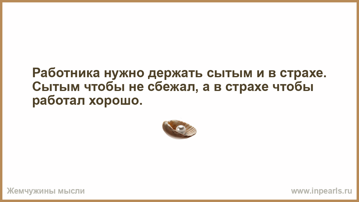 Работника нужно держать сытым и в страхе. Сытым чтобы не сбежал, а в страхе чтобы работал хорошо.