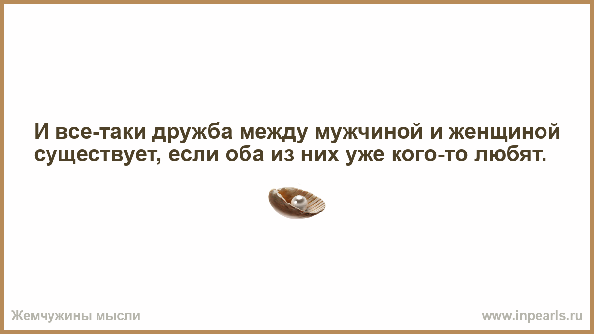И все-таки дружба между мужчиной и женщиной существует, если оба из них уже кого-то любят.
