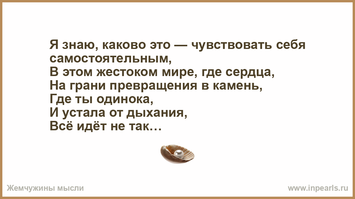 Я знаю, каково это — чувствовать себя самостоятельным,