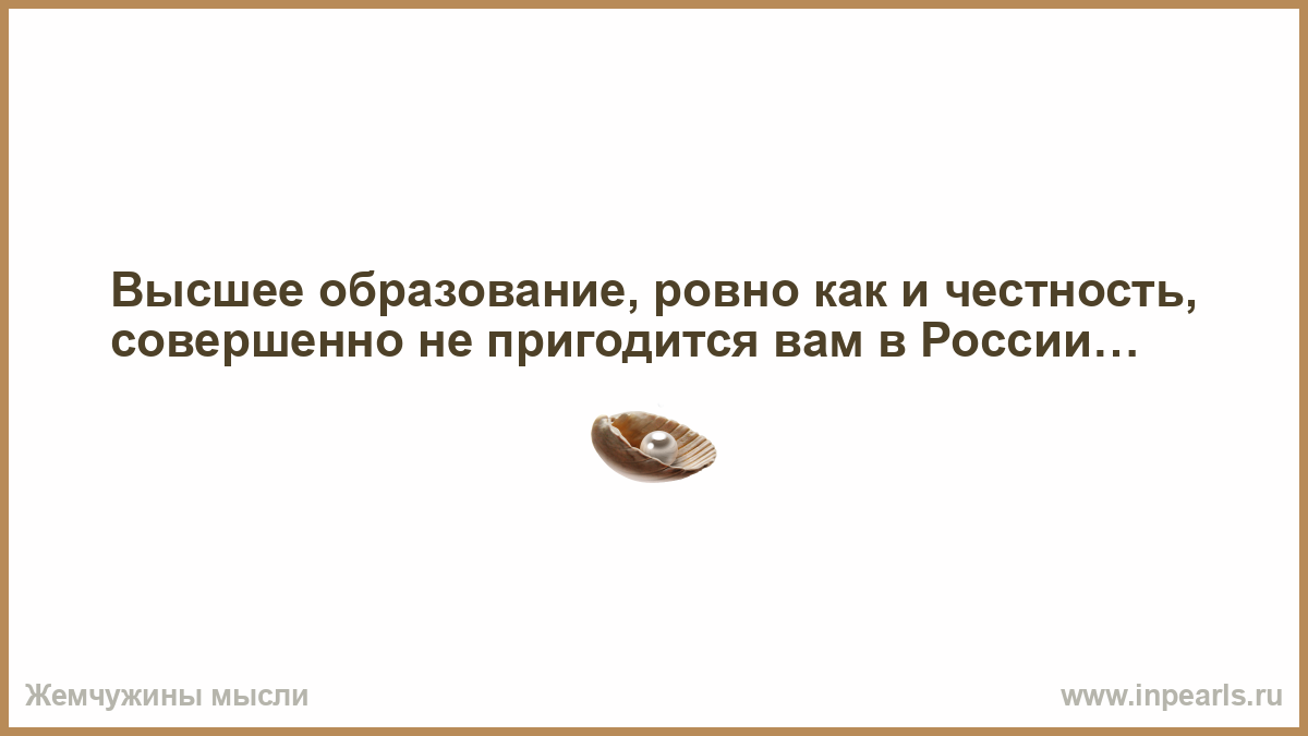Высшее образование, ровно как и честность, совершенно не пригодится вам в России…