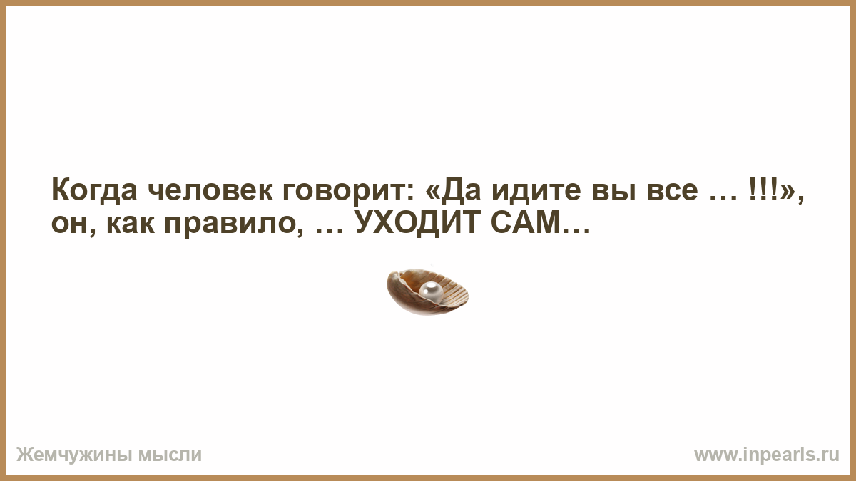 Когда человек говорит: «Да идите вы все … !!!», он, как правило, … УХОДИТ САМ…
