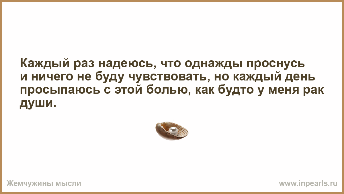 Каждый раз надеюсь, что однажды проснусь и ничего не буду чувствовать, но каждый день просыпаюсь с этой болью, как будто у меня рак души.