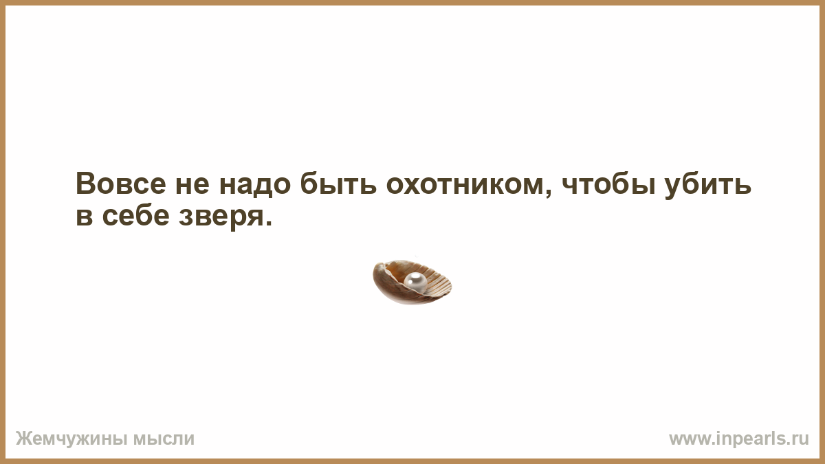 Вовсе не надо быть охотником, чтобы убить в себе зверя.