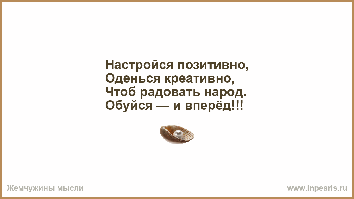 Настройся позитивно, Оденься креативно, Чтоб радовать народ. Обуйся — и вперёд!!!