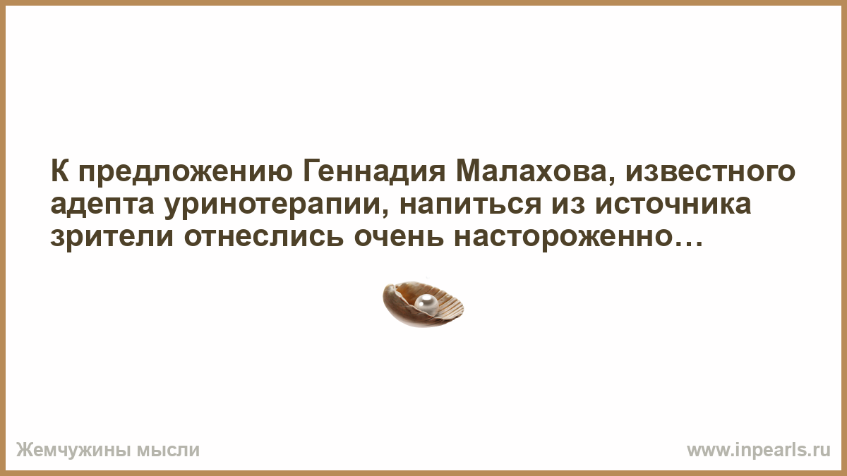 К предложению Геннадия Малахова, известного адепта уринотерапии, напиться из источника зрители отнеслись очень настороженно…