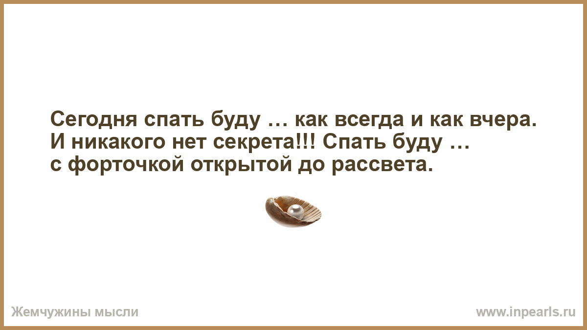 Сегодня спать буду … как всегда и как вчера. И никакого нет секрета!!! Спать буду … с форточкой открытой до рассвета.