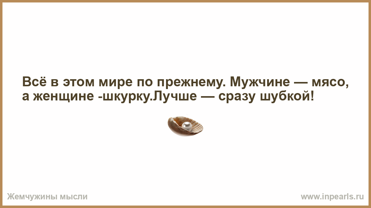 Всё в этом мире по прежнему. Мужчине — мясо, а женщине -шкурку.Лучше — сразу шубкой!