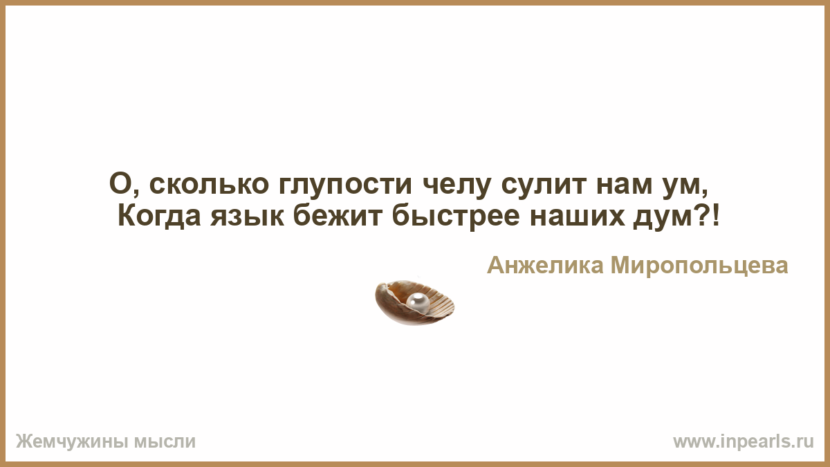 О, сколько глупости челу сулит нам ум, Когда язык бежит быстрее наших дум?!