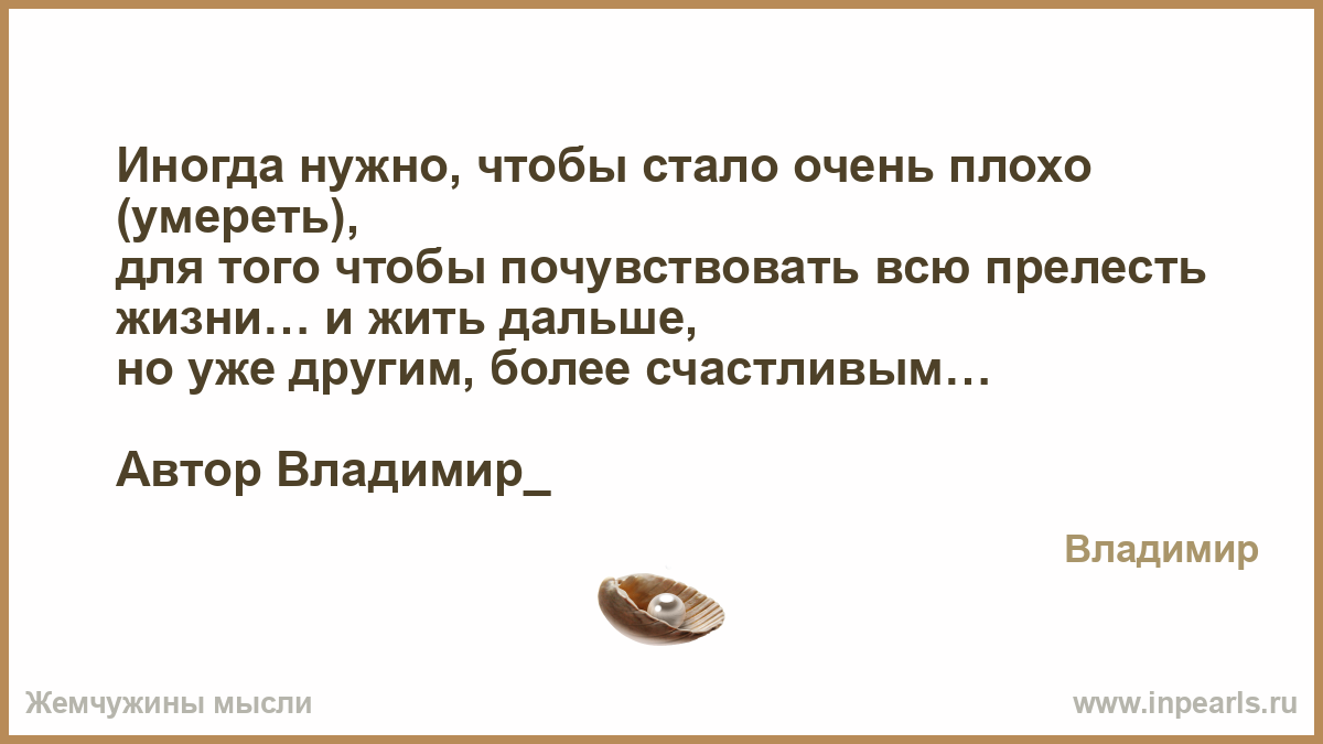 Иногда нужно, чтобы стало очень плохо (умереть), для того чтобы почувствовать всю прелесть жизни… и жить дальше, но уже другим, более счастливым…