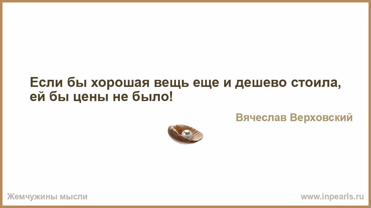 Если бы хорошая вещь еще и дешево стоила, ей бы цены не было!