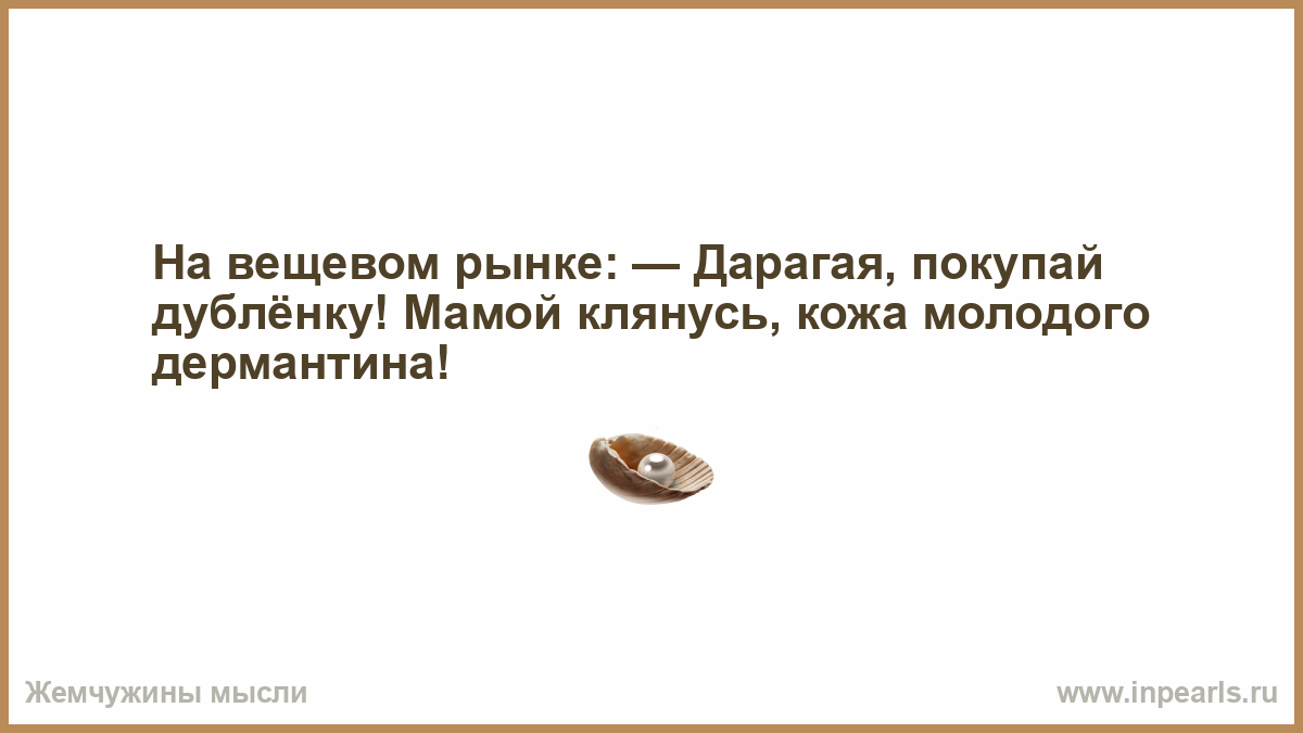 На вещевом рынке: — Дарагая, покупай дублёнку! Мамой клянусь, кожа молодого дермантина!