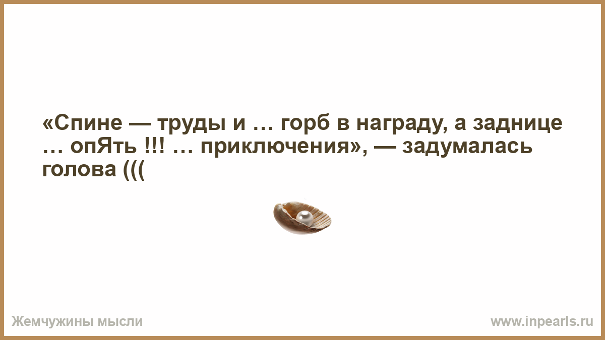 «Спине — труды и … горб в награду, а заднице … опЯть !!! … приключения», — задумалась голова (((