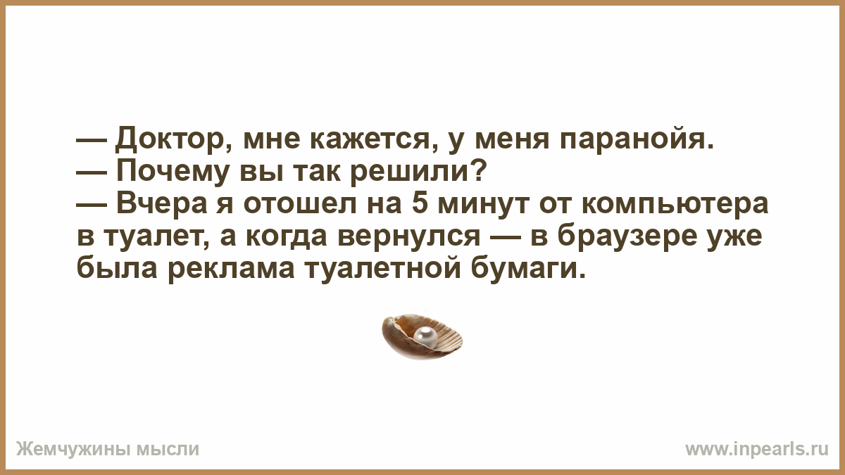 — Вчера я отошел на 5 минут от компьютера в туалет, а когда вернулся — в браузере уже была реклама туалетной бумаги.