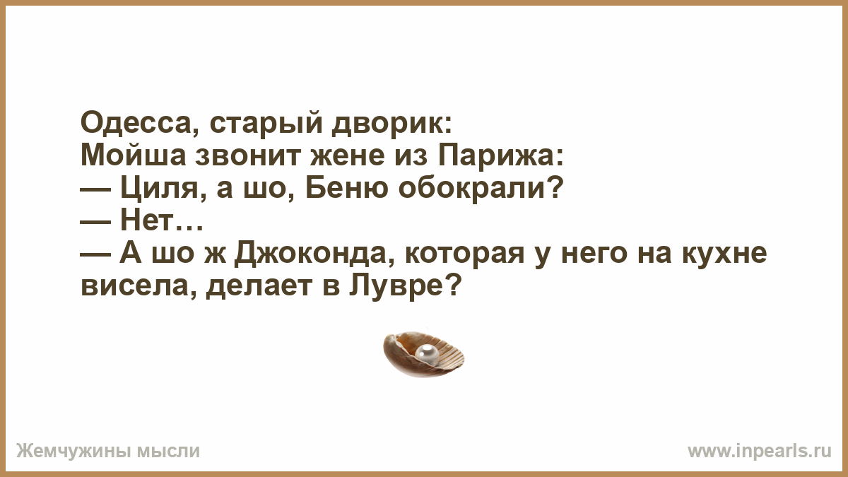 — А шо ж Джоконда, которая у него на кухне висела, делает в Лувре?