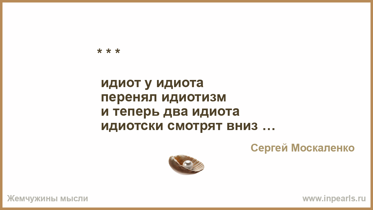 идиот у идиота перенял идиотизм и теперь два идиота идиотски смотрят вниз —